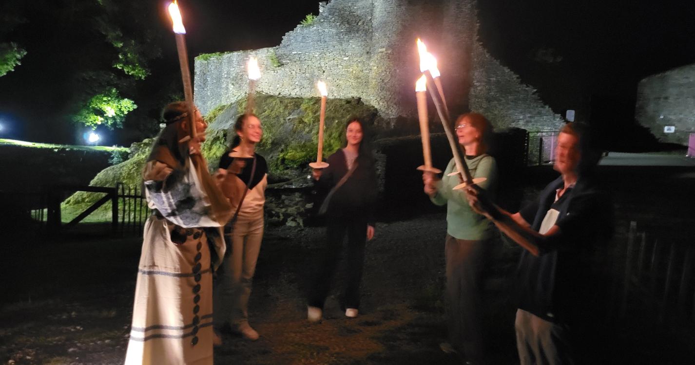 Today, amidst the silence of the night and a ghostly atmosphere full of mystery, Marie-Laure and Michel, your two enthusiastic guides dressed in period costume, will guide you around the castle by torchlight, telling you all about its glorious past, as well as the exploits of its fearless knights.
