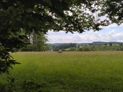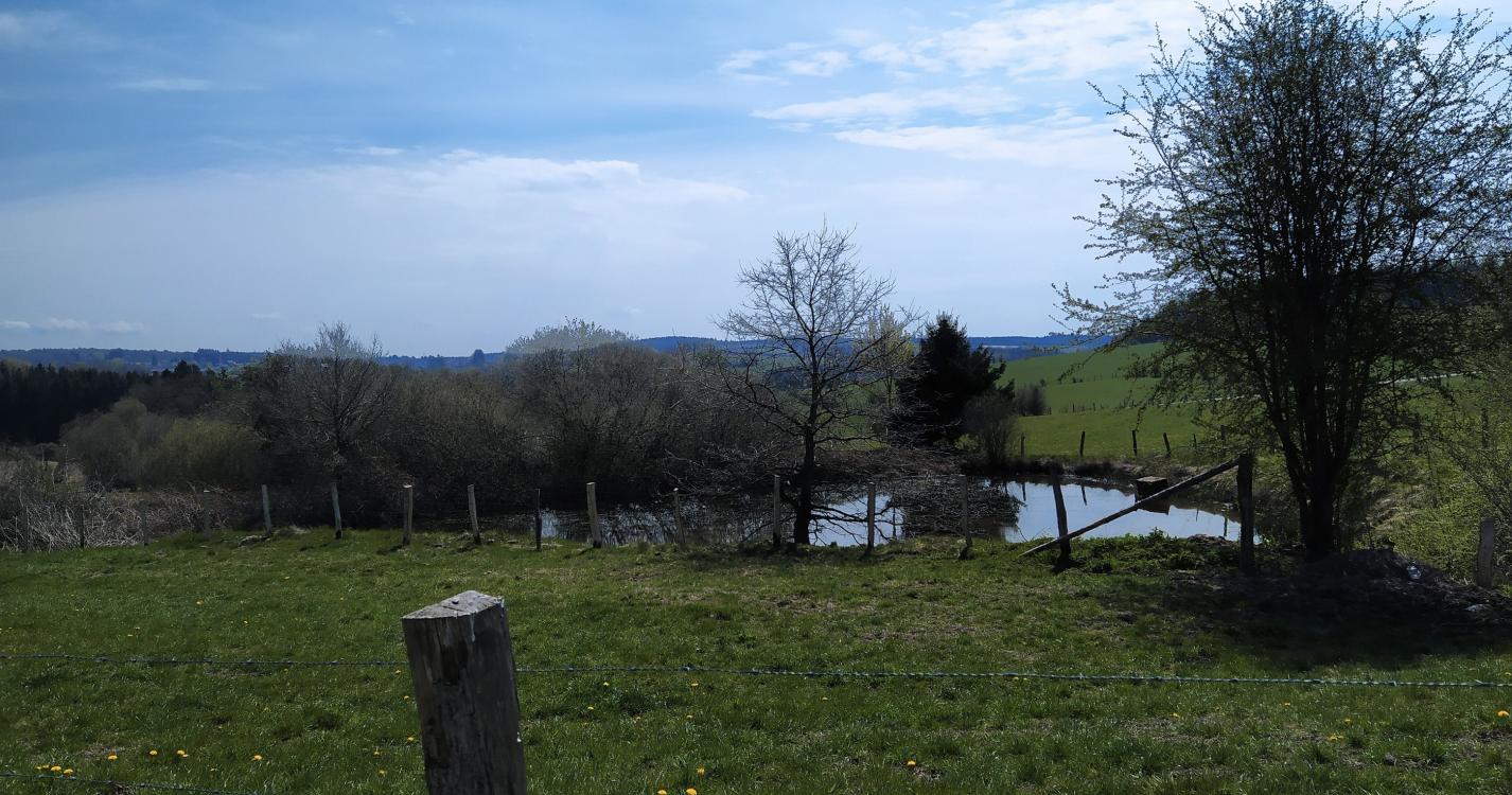 Nice and varied trail with as highlight the passage along the pond of Boiron . The start of the hike follows the meandering course of the Houille together with the GR 126 trail. At the Moulin de la Galette it leaves the GR 126 and continues on small asphalt roads through the fields via Sart Custinne to the Moulin de Boiron situated at a beautiful pond with an inviting terrace.