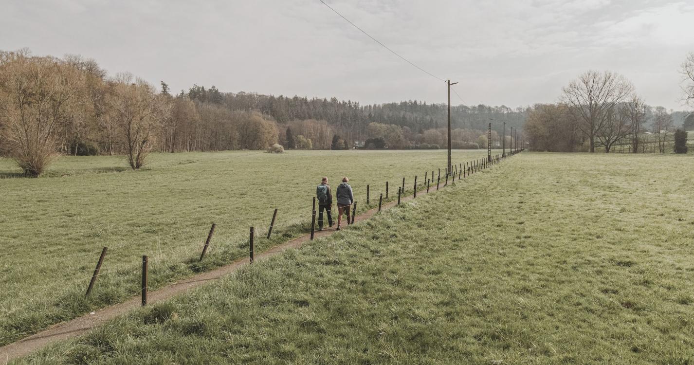 This walk starts in the square in Cour-sur-Heure and alternates between fields and forests, with a few ups and downs. The Eau d’Heure valley forms a basin and offers wonderful views of the hilly landscapes. Check out the old lime kilns, the walls of which are still visible. Old wagons that were used for the kilns are a testament to the past, especially in the square. In the high grounds of Cour-sur-Heure, cross the woods to reach an opening onto fields and the railway line. The walk then continues downhill and runs along the water to the gorgeous Castle of Ham-sur-Heure, its gardens, Saint Martin’s Church and Saint Roch's chapel. The return trip passes through open fields. In Cour-sur-Heure, check out the small, winding streets with their typical farms and houses, as well as the castle, which is flanked by magnificent towers.