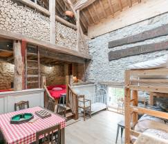 Treten Sie ein in dieses charmante Ferienhaus der 3,5-Sterne-Kategorie, in dem jedes Möbelstück und jedes Detail den Geist der Belle Epoque ausatmet und erleben Sie eine Atmosphäre, die durch die Verwendung von Natursteinen, Holz und antiken Gegenständen noch einmal besonders hervorgehoben wird! Haben Sie eine Schwäche für wundervoll altmodische Gebäude? Dann ist dieses Ferienhaus genau richtig für Sie! Im ebenerdigen Geschoss finden Sie ein wunderschönes Wohnzimmer mit Holzofen, das im Stil der alten Zeit eingerichtet ist, mit Ledercanapés, sichtbaren Stützbalken und Natursteinen für noch mehr Authentizität. Im großen Esszimmer mit dem außergewöhnlich ansprechenden Mobiliar und ganz in der Nähe einer charmanten Küche, die alle notwendigen Utensilien für Ihre besten Kochrezepte enthält, werden Sie sich rundum wohl fühlen. Dort befindet sich außerdem der Zugang zum Entspannungsraum mit Infrarotkabine und dem Spielsaal mit unter anderem einem Kicker und einer Tischtennisplatte! Im ersten Stock erwarten Sie die 5 Schlafzimmer mit einem privaten Badezimmer, insgesamt fünf Badezimmern, von denen 4 für zwei Personen gedacht sind und ein Schlafzimmer 6 Schlafplätze bietet. Alle Schlafzimmer überzeugen durch eine wunderschöne Einrichtung! Im großen Garten mit Schaukel und Rutsche können sich die Kids so richtig austoben. Während die Erwachsenen die überdachte Terrasse genießen werden, die in einem ehemaligen Schuppen eingerichtet
