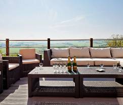 Genießen Sie auf der Terrasse mit atemberaubender Aussicht einen leckeren Aperitif.