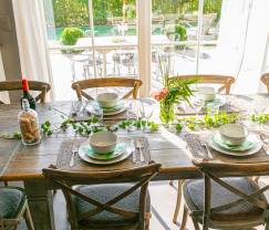 Dieses hervorragend eingerichtete Ferienhaus bietet Entspannung und Unterhaltung für Groß und Klein. Sie verfügen über einen Wellnessbereich mit Infrarotsauna und einen privaten Garten, in dem die Kinder mit Sicherheit viel Zeit verbringen werden. Die Umgebung ist in der Tat einer der größten Trümpfe dieser Ferienunterkunft, die sich inmitten einer grünen Landschaft befindet. Im Sommer können Sie den zauberhaften Außenbereich genießen und von den Gartenmöbeln und dem Grill ausgiebig Gebrauch machen. Auch von der Qualität der Inneneinrichtung, die Authentizität und modernere Elemente perfekt miteinander verbindet, werden Sie begeistert sein. Genießen Sie die warme Atmosphäre des Wohnbereichs, der aus einem gemütlichen Wohnzimmer und einem entzückenden Esszimmer besteht, das zu schönen Familienessen in geselliger Runde einlädt. Des Weiteren steht Ihnen eine hervorragend ausgestattete Küche zur Verfügung, die das Herz eines jeden Hobbykochs höherschlagen lassen dürfte. Auf den Etagen befinden sich Ihre 4 Schlafzimmer sowie 2 Badezimmer.