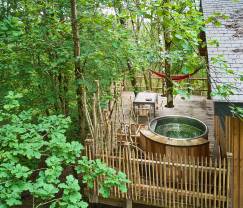 Draußen gibt es eine private Terrasse, auf der Sie Ihren Morgenkaffee genießen können, während Sie den Sonnenaufgang beobachten, oder einen angenehmen Abend mit Ihren Freunden oder Ihrer Familie verbringen können. Und wenn Sie sich wirklich entspannen möchten, nehmen Sie ein Bad im Hot Tub.