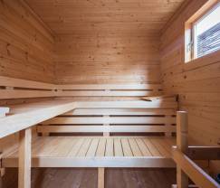 Im Außenbereich können Sie eine Sauna für 5 Personen mit Dusche und den umzäunten Garten nutzen. Es gibt einen Parkplatz für 4 Autos sowie eine Ladestation für Elektro- oder Hybridautos.