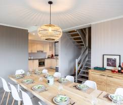 Im Freien können Sie eine köstliche Mahlzeit auf dem Grill genießen und dabei die Aussicht auf die umliegende Natur von der privaten Terrasse aus genießen. Und nach einem Tag voller Abenteuer können Sie in der Sauna oder im Whirlpool entspannen.