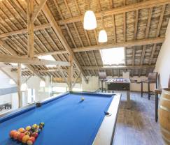 Der Anblick dieses weitläufigen Anwesens bezaubert die ganze Familie. Die Kinder werden sich über den 3000 m² großen, privaten Garten freuen sowie über die Schaukel und die Rutsche auf diesem rundum eingezäunten Gelände. Die Erwachsenen wiederum genießen die überdachte Terrasse, die schönen Gartenmöbel und den Grill. Auch die Inneneinrichtung wird ist eine Augenweide. Für Entspannung ist gesorgt wie auch für Unterhaltung, z.B. mit dem Billardtisch dem Kickertisch, sowie mit dem Wellnessbereich mit Sauna und Jacuzzi. Darüber hinaus ist das Haus äußerst zweckmäßig angelegt. So haben alle sechs Schlafzimmer ein eigenes Badezimmer. Hobbyköche finden zur Freude aller ihr Glück in der ausgesprochen gut ausgestatteten Küche. Ihre Mahlzeiten können Sie in dem großen Speisesaal einnehmen, ideal für große Festtafeln und unvergessliche Tischrunden. Des Weiteren gibt es zwei Wohnzimmer, jedes mit einem Flachbildfernseher ausgestattet. In dem Hauptwohnzimmer erwartet Sie zudem ein offener Kamin.