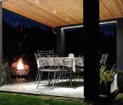 Im großen umzäunten Garten gibt es eine hübsche überdachte Terrasse, auf der Sie im Sommer wunderbar bei einem kühlen Getränk zusammensitzen können.