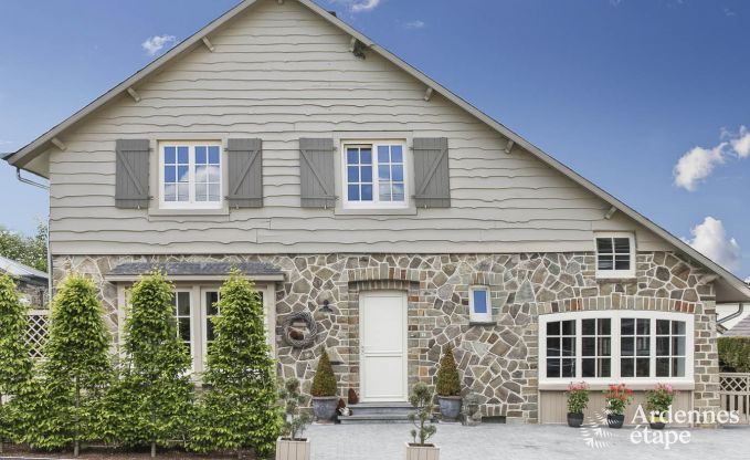 Ihr neues Ferienhaus liegt versteckt vor neugierigen Blicken in einem ruhigen Wohnviertel und dennoch in Zentrumsnähe in Paliseul, der ideale Kompromiss für einen gelungenen Urlaub. Es ist mit einem Freizeitraum mit Billardtisch und Kickertisch sowie mit Infrarotkabine ausgestattet. Für Entspannung und Unterhaltung im Haus ist also gesorgt! Die fünf Zimmer, davon zwei mit eigenem Badezimmer sind sehr gepflegt eingerichtet und bieten ein sehr angenehme Privatsphäre. Auch der Gemeinschaftsbereich mit Wohnzimmer und Bar wird Ihnen gefallen, ein einladender Ort, wo die Familie schöne gemeinsame Momente verbringen wird. Er ist zur voll ausgestatteten Küche und dem hellen Esszimmer hin offen. Von hier haben Sie einen schönen Blick auf den Garten. Auch der Außenbereich verspricht herrlich erholsame Momente, z. B. in den bereitstehenden Liegestühlen oder einfach bei einem Abendessen bei Kerzenschein auf der Terrasse.