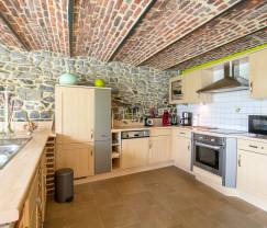 Das ansprechende Gebäude bietet der gesamten Familie einen wunderschönen Urlaubsaufenthalt. Der schön gestaltete Garten dient den Kindern als fantastischer Spielplatz. Die Erwachsenen werden das herausragende Komfortniveau genießen können. Im Sommer kann sich die ganze Familie am Grill auf der hübschen Terrasse mit Gartenmöbeln zusammenfinden. Sie werden feststellen, dass jeder Raum von der gleichen ursprünglichen und authentischen Atmosphäre durchdrungen ist, die das Ferienhaus mit seinen Natursteinmauern und gewölbten Decken ausstrahlt. Der Wohnbereich mit großem Esszimmer und einer gemütlichen Sitzecke am Holzofen strahlt eine gesellige Stimmung aus. An diesem Ofen werden Sie kuschelige Winterabende verleben. Der erste Stock beherbergt 4 Schlafzimmer, die mit einer hübschen und persönlichen Einrichtung überzeugen. Eines der Schlafzimmer verfügt sogar über ein eigenes Badezimmer. Ein zweites ausladendes Bad verfügt über Dusche und Wanne und befindet sich ebenfalls auf diesem Stockwerk.