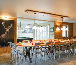 Der große und gemütliche Wohnbereich lädt geradezu zum Verweilen ein und umfasst ein großzügiges Esszimmer, eine komplett eingerichtete Küche und eine riesige Sitzecke mit komfortablen Sofas, TV-Gerät und Kaminkassette. Darüber hinaus finden sich hier auch noch eine zusätzliche Leseecke und ein Entspannungsraum mit Billardtisch. Die insgesamt 6 Schlafzimmer, von denen einige in Familien- oder Kinderzimmer umgestaltet werden können, wurden allesamt geschmackvoll und einen mit Gefühl für Details eingerichtet. Darüber hinaus zählt die Unterkunft 5 Badezimmer, davon eines mit herrlicher Badewanne. Draußen können Sie das schöne Wetter auf verschiedenen Terrassen oder im ausladenden Garten genießen, wo sich die Kids nach Herzenslust auf einem der Spielgeräte (Rutsche oder Schaukel) austoben können. Hier befindet sich auch ein Petanque-Platz, und es ist immer ein Vergnügen, zum Abschluss des Abends mit der ganzen Familie eine Partie zu spielen. Kurzum, dieses Ferienhaus für 15 Personen bietet Jung und Alt alles, was man für ein fantastisches Wochenende oder einen (halb-) wöchentlichen Aufenthalt benötigt.