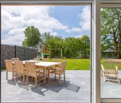 Im hinteren Teil des Gartens lädt ein Gartenpavillon zur Lektüre in einem guten Buch ein. Dort lernen Sie auch Ihre Nachbarinnen kennen: eine sympathische kleine Herde Ziegen, mit denen sich die Kleinen sofort anfreunden werden.