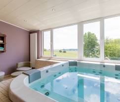 Aber auch die Erwachsenen kommen in diesem Haus auf ihre Kosten. Es umfasst einen herrlichen Wellnessbereich mit Jacuzzi, Sauna und einer angenehmen Dusche. Von diesem lichtdurchfluteten Bereich hat man einen zauberhaften Ausblick auf die umgebende Landschaft.