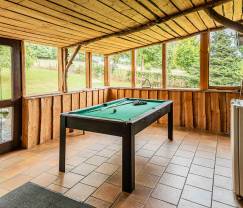 Für gemütliche Momente drinnen gibt es einen Kamin, der für eine warme und stimmungsvolle Atmosphäre sorgt. Sie können sich im geräumigen Loungebereich oder an der Bar versammeln, wo Sie ein Getränk zubereiten und die Gesellschaft genießen können. Für Spielbegeisterte stehen ein Tischfußballspiel und verschiedene Gesellschaftsspiele zur Verfügung, sodass immer etwas los ist.