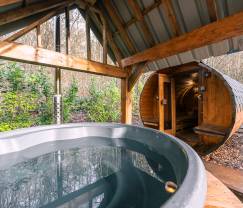 Draußen ist das Chalet von einem privaten Garten und einem bewaldeten Park umgeben, ideal zum Entspannen und Genießen der umliegenden Natur. Und für Sommerabende steht ein Grill für gemütliche Mahlzeiten im Freien zur Verfügung.