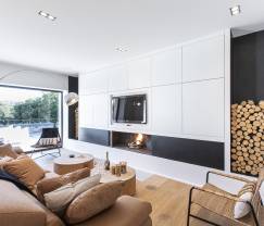 Dieses traumhafte Haus aus Sonnenstein mit entschieden modernem Interieur in schlichtem Design, geprägt von Luxus und unaufdringlichem Komfort, stand bereits im Mittelpunkt einer Reportage in einer Architektur-Zeitschrift. Bei der Gestaltung der eleganten Einrichtung wurde alles mit Sorgfalt bedacht (sogar die Beleuchtung) und individuell aufeinander abgestimmt. Der offene Kamin verleiht dem Wohnbereich eine besondere Gemütlichkeit, in der Sie sich rundum wohlfühlen werden.